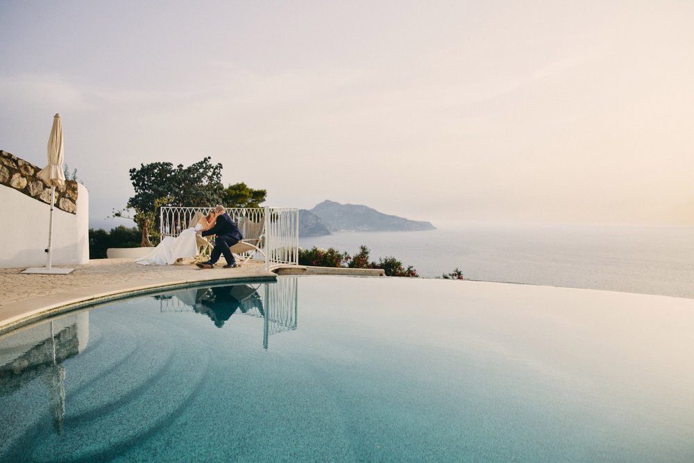 Breathtaking beauty and Italian joie de vivre: words are not enough to describe this Austrian-Italian wedding in southern Italy. Overlooking the Gulf of Naples, the Isle of Capri on the horizon, Eva and Bruno chose the most breathtaking location one can imagine. This international wedding in Italy will have a special place in our hearts forever.