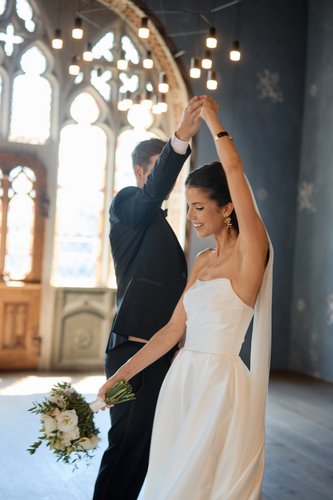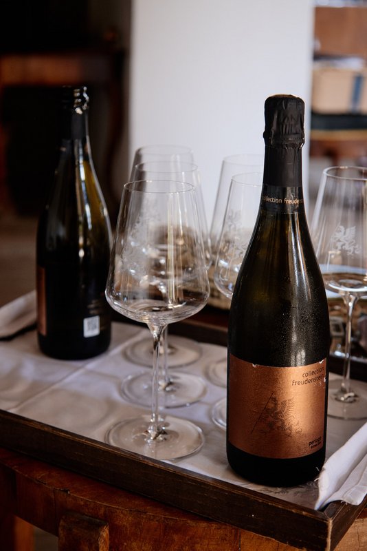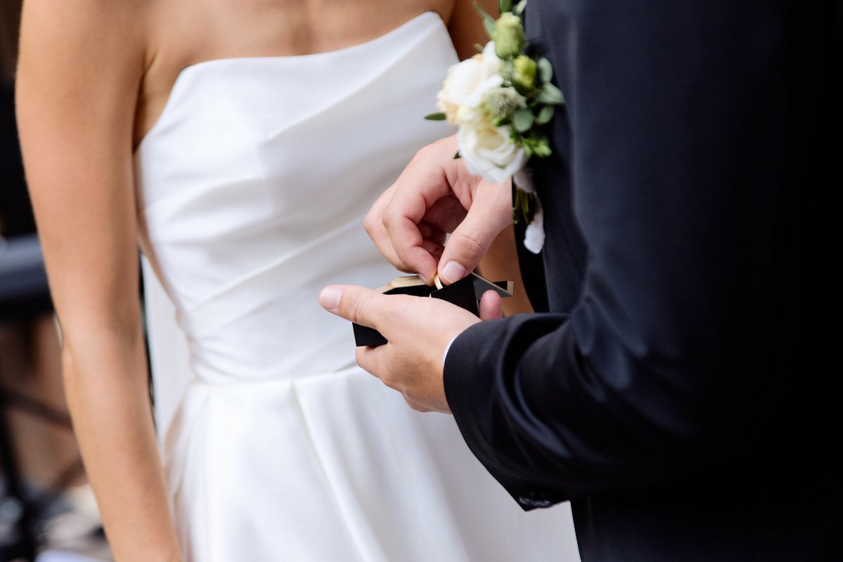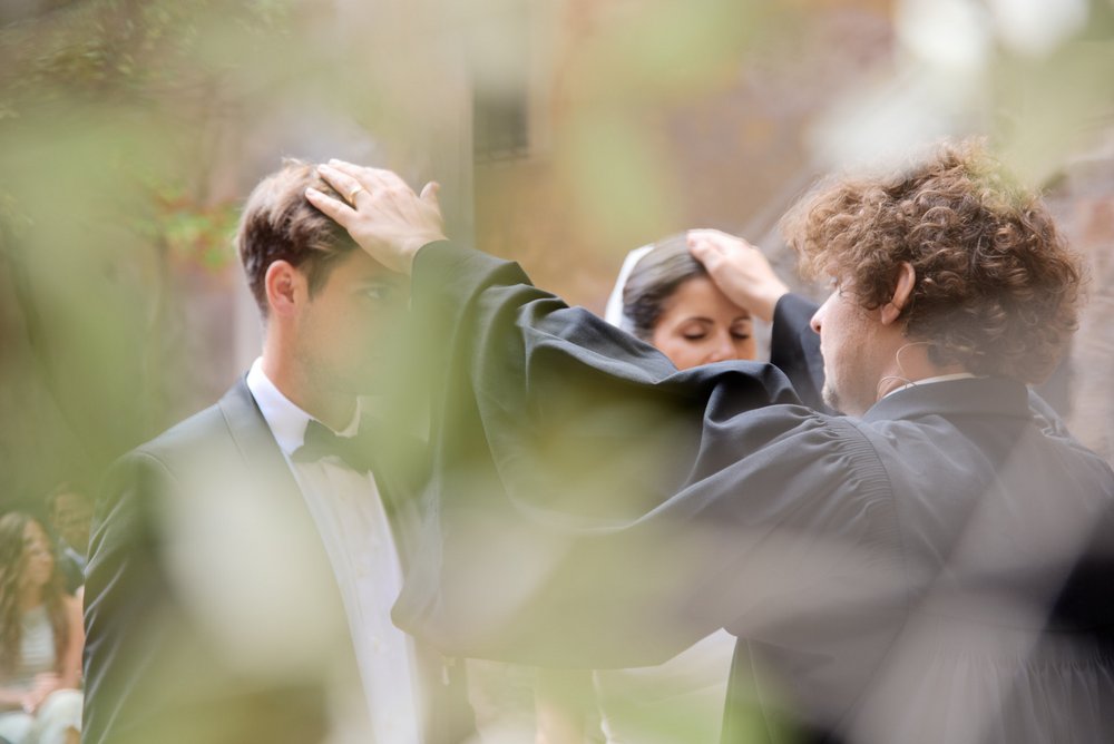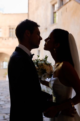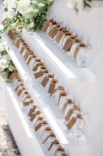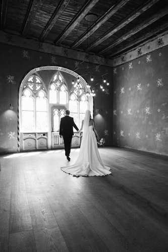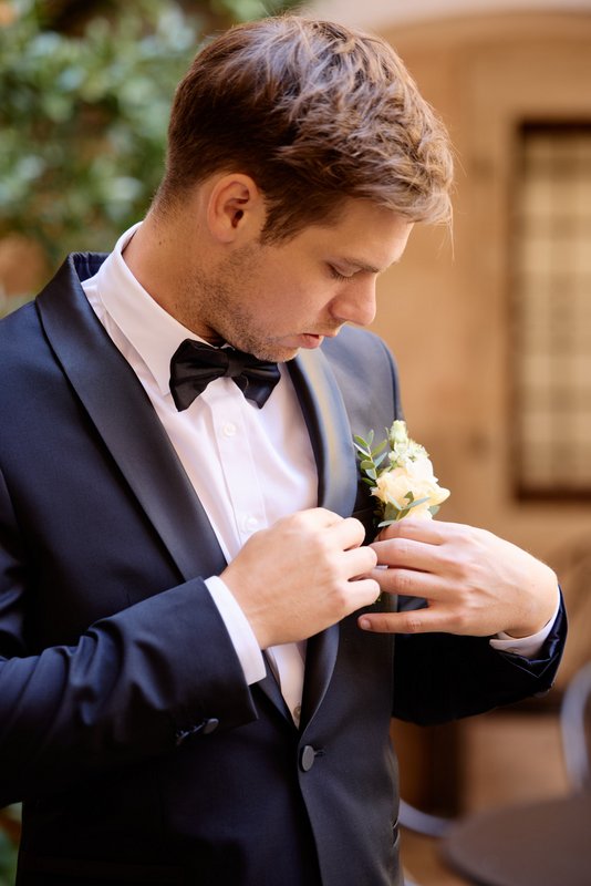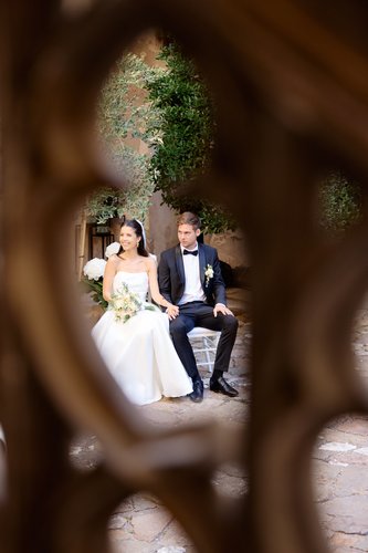 Der Hochzeitsmorgen begann stilvoll und mit prickelnder Vorfreude hinter den dicken Mauern von Schloss Freudenstein, die von vergangenen Tagen erzählen. Nach ihren Vorbereitungen hat sich das Brautpaar beim First Look das erstemal zu zweit getroffen. Anschließend war gemütlich Zeit für Paarfotos im und um das Schloss Freudenstein: in der Allee und in den Weinbergen, im Olivengarten und im wunderschönen Blauen Saal. Die persönliche und emotionale evangelische Trauungszeremonie fand unter freiem Himmel im Innenhof des Schlosses statt.