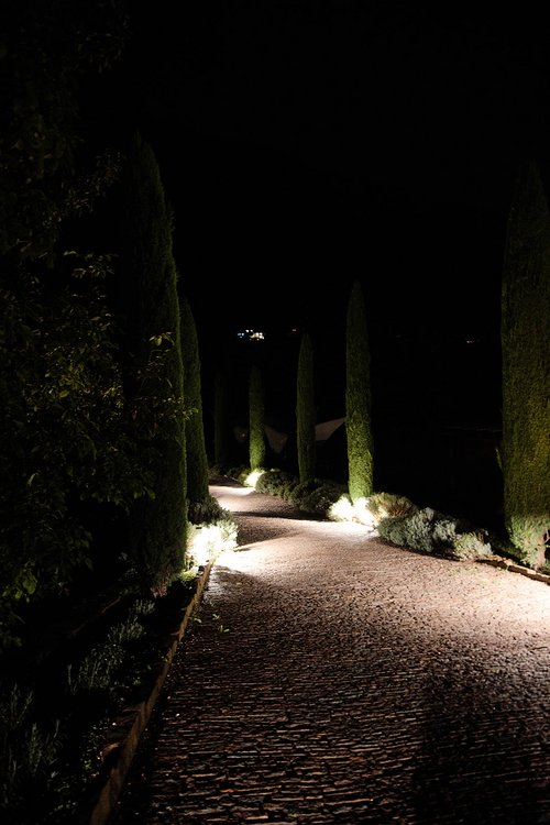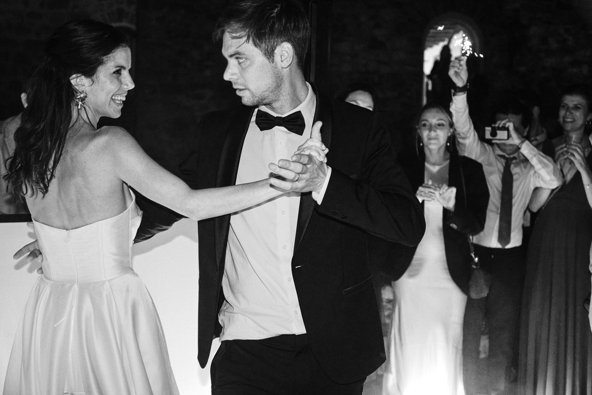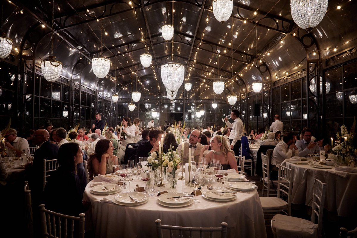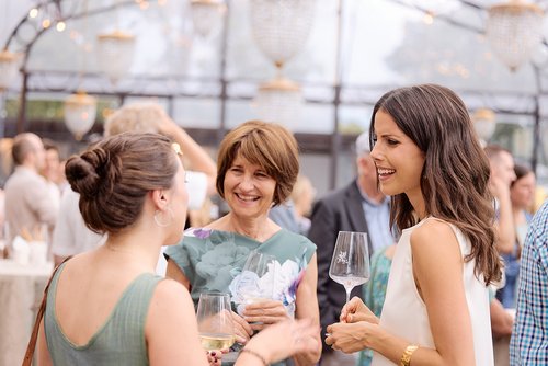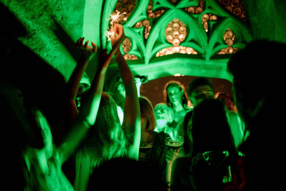 Nach einem exklusiven Hochzeits-Dinner in der Orangerie gab es den Tortenanschnitt unterm nächtlichen Himmel auf der Dachterrasse des Schlosses. Hier wurde auch genossen und gefeiert, der eine oder andere Espresso Martini getrunken und getanzt, während sich die Nacht übers Land legte und die Sterne mit den Lichtern tief unten im Tal um die Wette funkelten.
