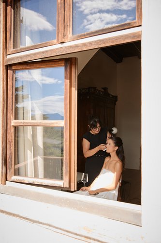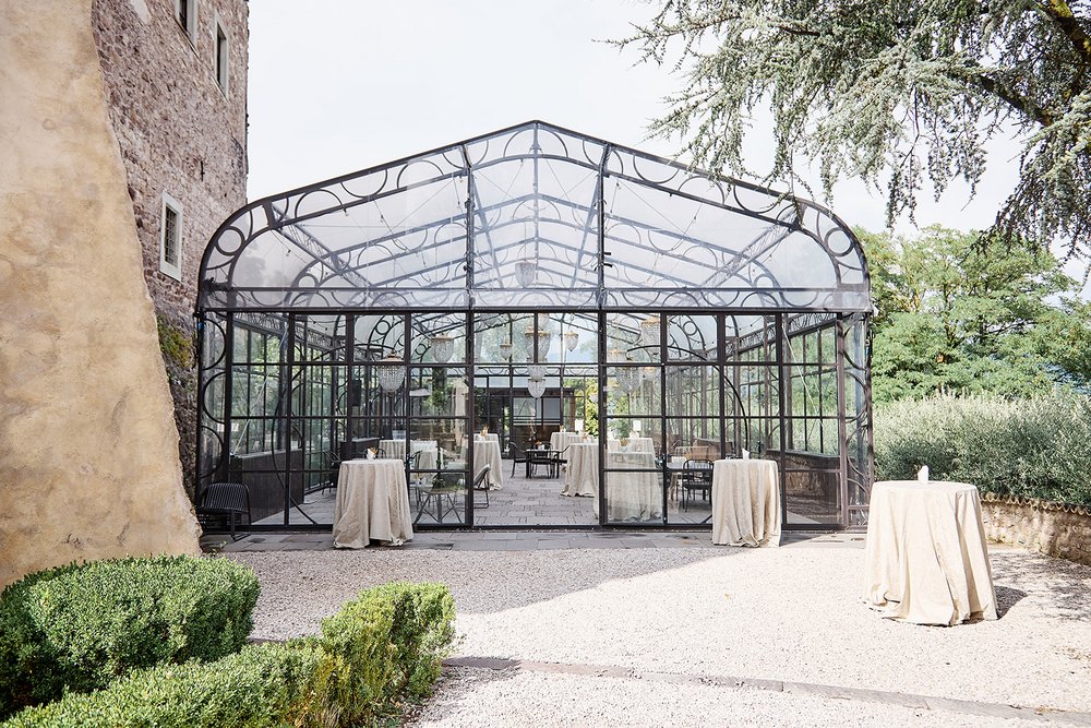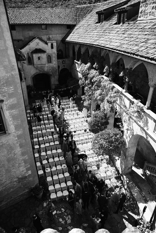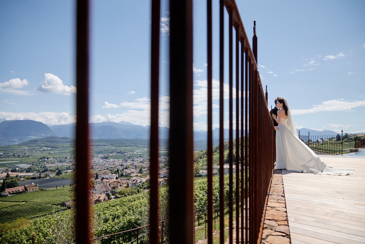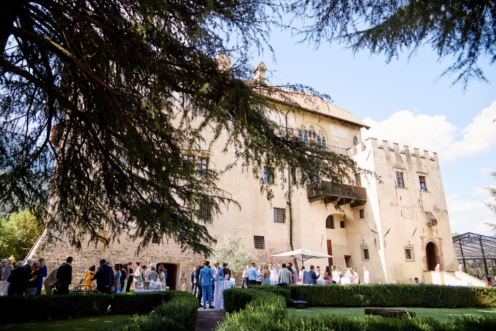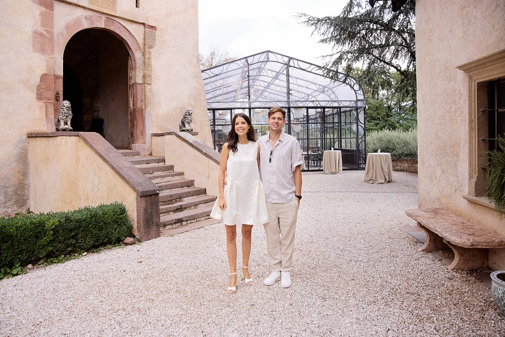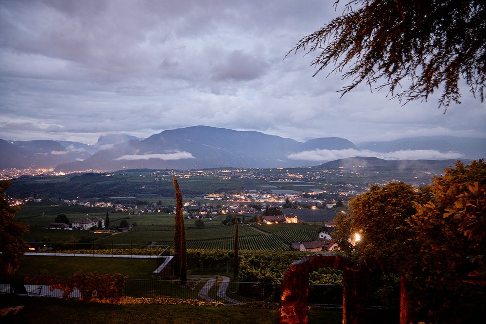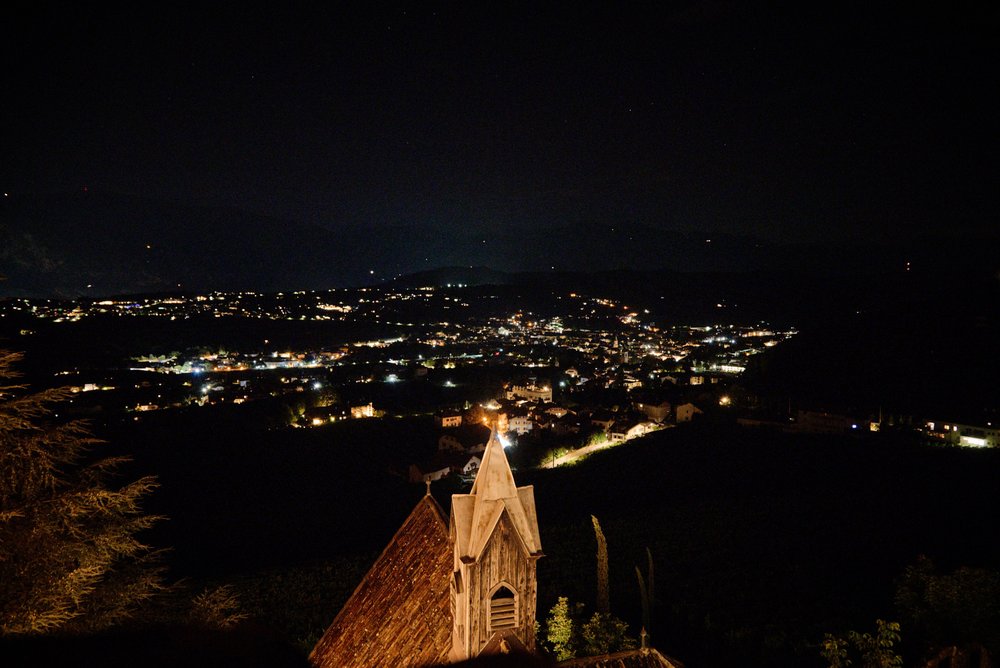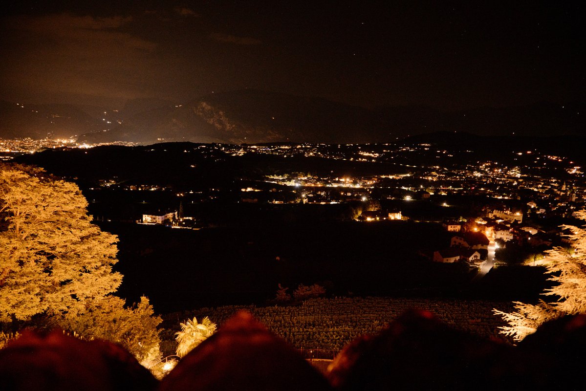 Was für ein Ort, was für eine Art, eine Zweitageshochzeit zu beginnen! Die Orangerie von Schloss Freudenstein war der perfekte Ort für ein entspanntes Get Together am Abend vor der großen Feier. Hoch über Eppan gelegen, verzaubert dieser Ort auf märchenhafte Weise: Jahrhundertealte Mauern bieten historischen Charme. Der wunderbare Weitblick über Apfelfelder und Weinberge bis zu den hohen Gipfeln der Dolomiten ist einfach unbeschreiblich. Und die Lichtspiele in der Orangerie verändern sich ständig und geben dem Ort seine eigene Magie.