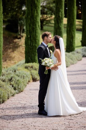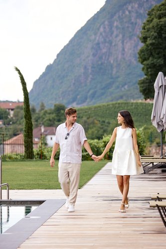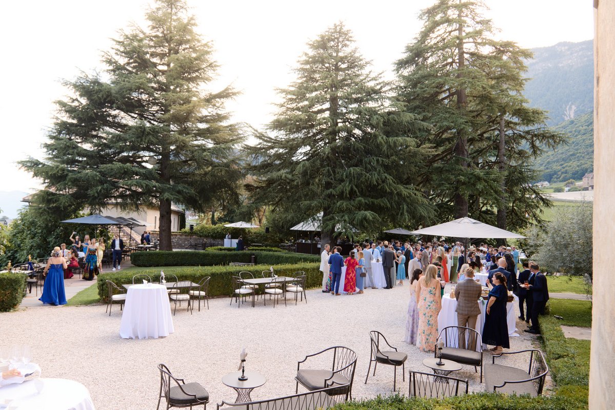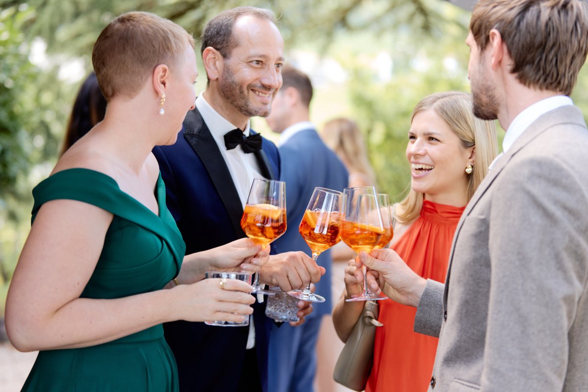 Im weitläufigen Schlosspark wurde anschließend beim Aperitivo das neue Ehepaar gefeiert, Cocktails und Espressi getrunken, die Sonne genossen und rund um den Pool entspannt.