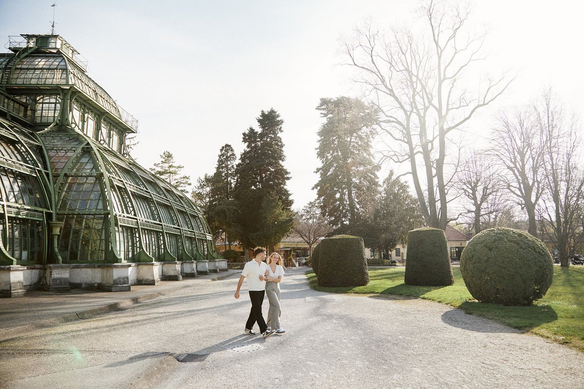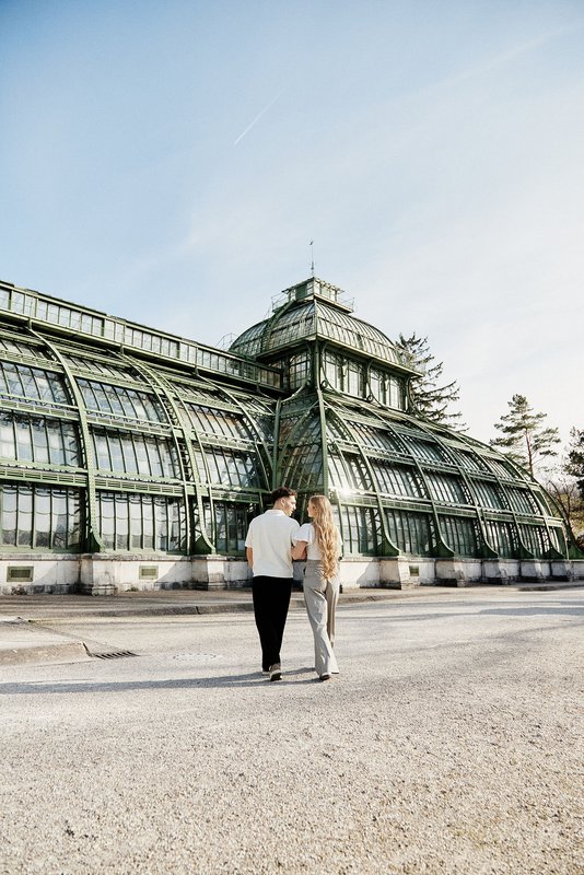 What a charming place for a coupleshoot! The hothouse of Schönbrunn palace gardens is an architectural gem built in 1882. We had so much fun taking pictures of Fiona and Aaron at this magical place.
